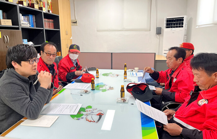 | ▲ 유어면에서 산불감시원들에게 안전교육을 실시하고 있는 모습 |