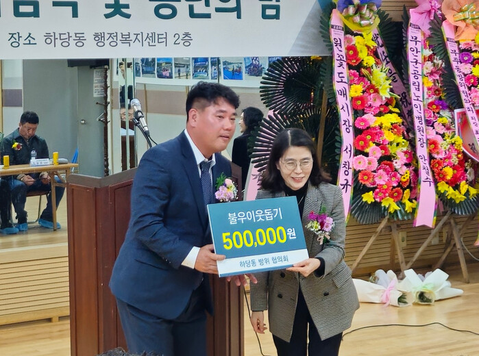 하당동 방위협의회는 이날, 장학금 30만원을 고등학생 자녀가 있는 회원에게 전달했고 불우이웃돕기 성금 50만원을 하당동에 기탁했다.