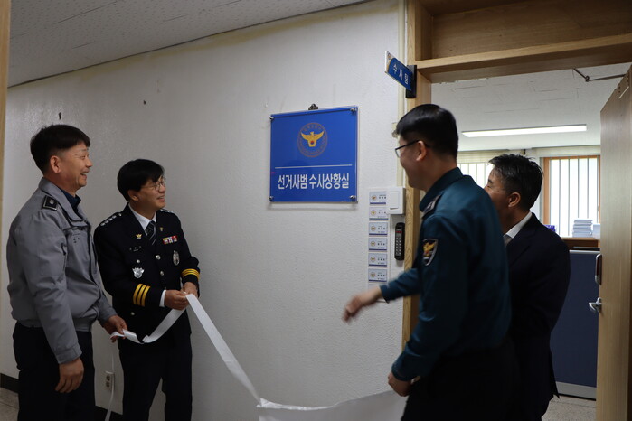 [함평=황승순 기자]전남함평경찰서(서장 권춘석)는 9일 제 21대 대통령선거 대비 수사상황실 현판식을 갖고 제2단계 선거사범 단속 활동에 돌입했다.