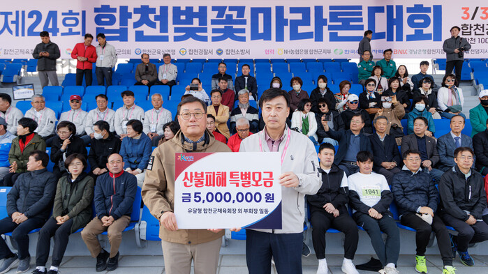 한편, 이날 열린 합천벚꽃마라톤대회는 대형 산불 피해 희생자를 애도하기 위해 각종 부대행사를 전면 취소하고 간소화된 형태로 개최되었으며, 개회식에서는 산불 희생자에 대한 묵념이 엄숙히 진행됐다.