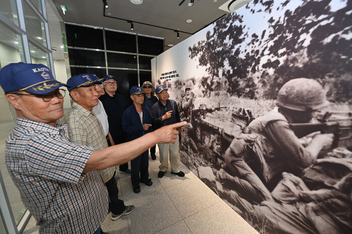 | ▲ 대한민국고엽제전우회 경기도지부 하남시지회 회원들이 보훈회관 내 1층에 마련된 보훈전시관을 둘러보고 있다. (사진=하남시청 제공) |