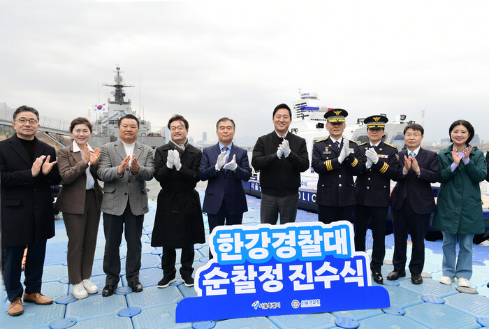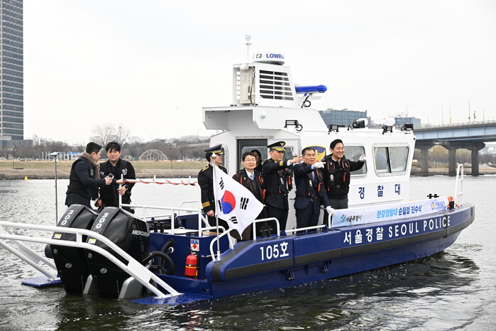 이날 진수식은 지난해 4월부터 진행한 한강경찰대의 노후 순찰정 2대(105호, 106호)의 신형 순찰정 건조작업이 마무리됨에 따라 마련된 것으로, 김현기 의장을 비롯해 오세훈 서울시장과 조지호 서울경찰청장 등 30여 명이 참석했다.