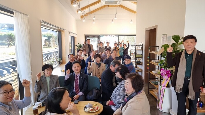 | ▲ 강진군, 지난 21일, 군동면 영포마을 일대에 생태문화복합공간 ‘백금포’의 개소식 운영 성공 다짐 기념촬영 / 강진군 제공 |