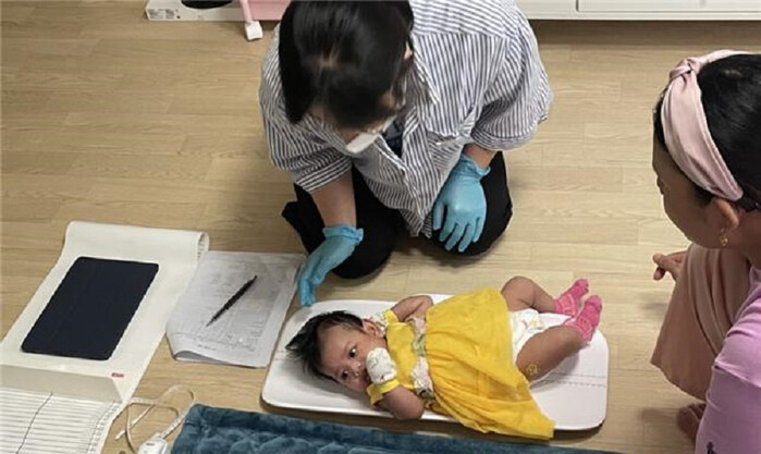 | 영암군 보건소 관계자가 관내 출산 가정 찾아 육아 건강상태를 살펴보고 있다 / 영암군 제공 |