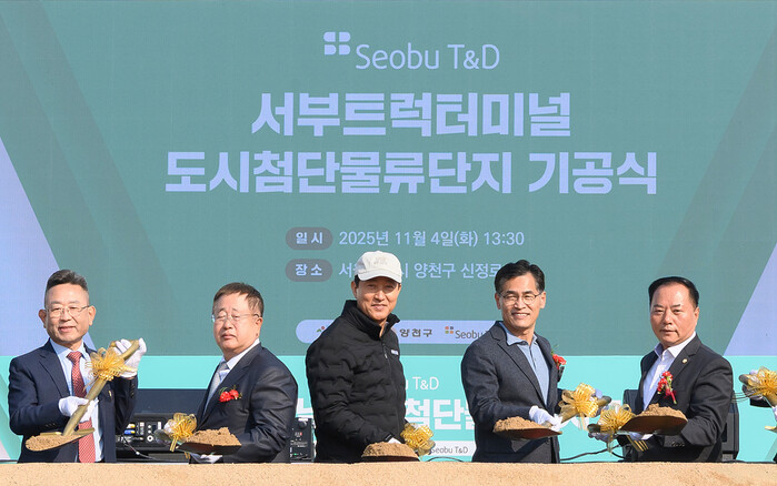 | ▲ 지난 11월4일 서부트럭터미널 기공식에서 이기재 구청장(오른쪽 두 번째)이 시삽식을 진행하는 모습. (사진=양천구청 제공) |
