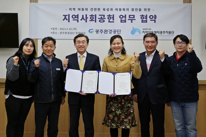[광주=정찬남 기자] 광주환경공단(이사장 김성환)이 지역 아동의 건강한 육성과 사회구성원으로서의 올바른 성장을 돕고자 지역아동센터 광주지원단과 아동복지 증진을 위한 업무협약을 16일 체결했다.