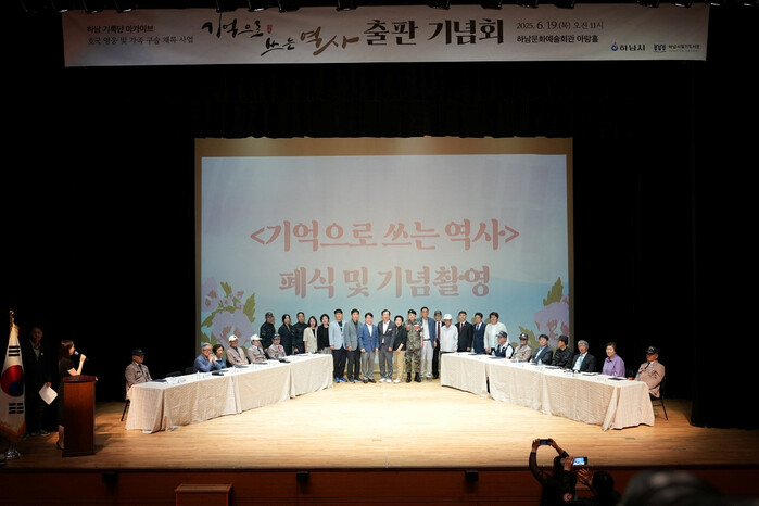 [하남=전용원 기자] 경기 하남시가 최근 하남문화예술회관 아랑홀에서 ‘기억으로 쓰는 역사’ 출판 기념회를 열고, 하남에 거주하는 호국 영웅과 가족들의 삶을 기록한 결과물을 시민과 함께 나눴다.
