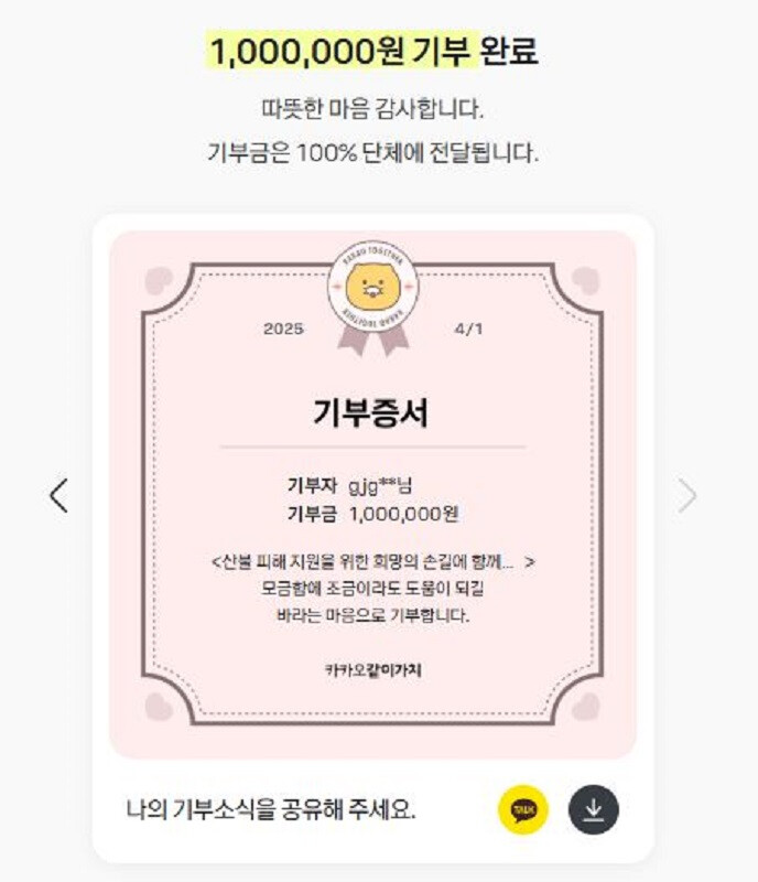 이번 모금은 재단 임직원이 참여해 성금 1백만 원을 모았으며, 광주 사회복지공동모금회 사랑의 열매 온라인 모금함 ‘산불 피해 지원을 위한 희망의 손길에 함께해주세요’를 통해 기부 액을 전달했다.
