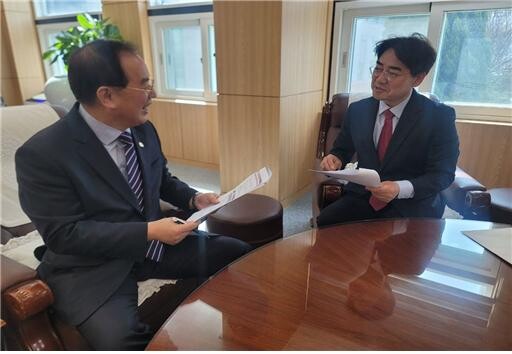 [부산=최성일 기자] 이성권 국민의힘 사하구(갑) 국회의원 후보는 19일(화) 하윤수 부산시교육감을 만나 지역의 교육발전 정책비전을 담은 ‘사하구 교육 관련 정책제안서’를 전달하고 설명하는 시간을 가졌다.