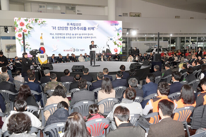 한편 강기정 시장은 3‧1절 기념식에 앞서 상무시민공원 광주독립운동기념탑에서 고욱 광복회 광주시지부장, 보훈단체 대표 등과 함께 참배했다.