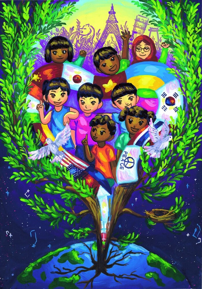 카노크누치 클라한은 “이 그림을 통해 평화를 실현하는 전 세계 사람들의 연대를 보여주고 싶었다”며 “모든 사람이 평화에 기여하고 동참했으면 좋겠다”고 수상 소감을 전했다.