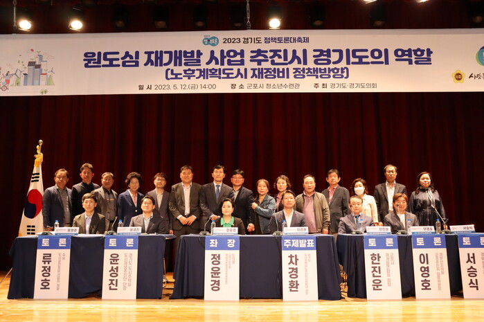 [수원=채종수 기자] 경기도의회 여성가족평생교육위원회 정윤경 의원(더불어민주당, 군포1)이 좌장을 맡은 '원도심 재개발 사업 추진시 경기도의 역할' 정책토론회가 최근 경기 군포시 청소년수련관에서 개최됐다.