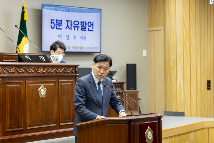 | ▲ 박성호 이원이 제296회 임시회 5분 발언을 하고 있다. (사진=강서구의회 제공) |