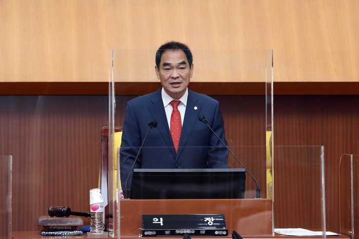 | ▲ 박진식 의장이 제314회 임시회 제2차 본회의에서 발언하고 있다. (사진제공=도봉구의회) |