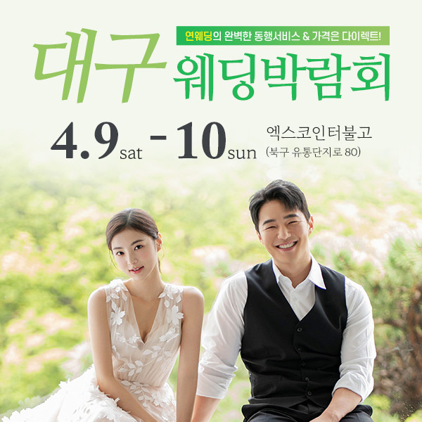 대구웨딩박람회를 통해 스드메 패키지를 계약하는 예비신혼부부에게는 박람회 할인가 드레스 90만원, 스튜디오 90만원 패키지를 제공하며, 웨딩홀 계약자에게는 현금 10만원 현장 지급, 대구전지역 실시간 할인견적, 식대 할인, 부대사용료 할인, 수모, 예도 서비스, 계약금 10~30만원을 지원한다.