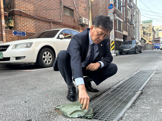 먼저, 최 의장은 송중동에 매립된 빗물받이 주변부가 파손되고 움푹 파인 것을 확인한 후 보행자와 차량의 통행 안전을 위협하는 사고의 우려가 있다고 생각해 모래주머니로 구멍을 메꾸며 임시조치를 했다.
