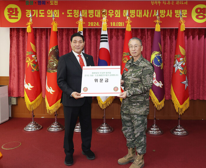 김 부의장은 위문금을 전달하며 “해병대는 국가와 경기도의 든든한 버팀목이다. 여러분의 헌신 덕분에 지역사회와 국민이 안심할 수 있다”며 감사와 격려를 전했다.
