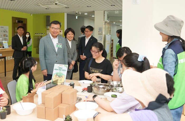 | ▲ 환경교육센터 프로그램 참여 중인 류경기 중랑구청장. (사진=중랑구청 제공) |