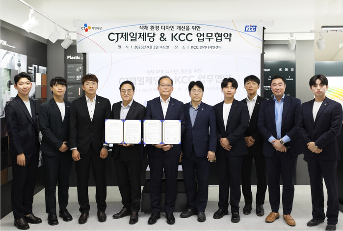 KCC와 CJ제일제당은 서울 서초구 소재 KCC 컬러디자인센터에서 ‘색채 환경 디자인 개선을 위한 업무협약(MOU)’을 체결했다.