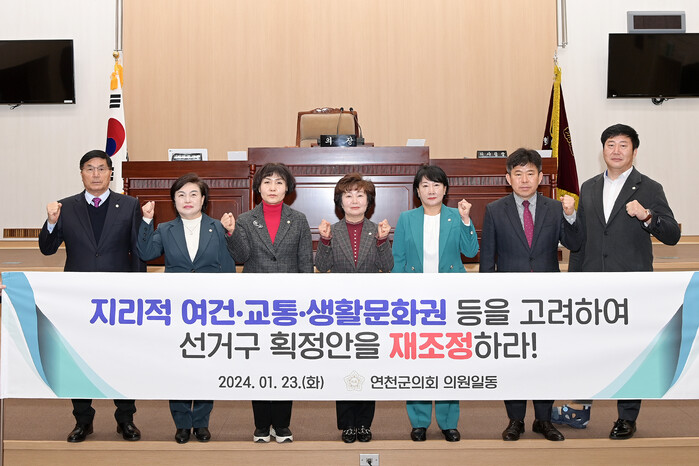 [연천=조영환 기자] 경기 연천군의회는 23일 제282회 제1차 정례회 본회의에서 연천군 의원 전원(7명)이 공동발의한 ‘선거구 획정안 재조정 촉구 건의안’을 만장일치로 채택했다.