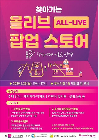 아울러 같은 날 올해 새롭게 선보이는 「찾아가는 올리브(ALL-LIVE) 팝업스토어」를 오전 10시부터 오후 5시까지 시청 1층(대강당-대회의실 앞)에서 개최한다.
