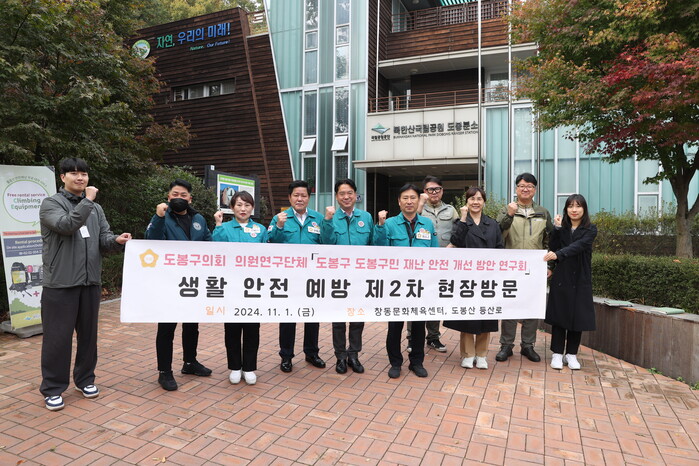 [시민일보 = 문민호 기자] 서울 도봉구의회 의원 연구단체인 ‘도봉구민 재난 안전 개선 방안 연구회’는 최근 제2차 현장방문으로 창동문화체육센터와 도봉산 등산로의 북한산국립공원 도봉분소를 방문했다고 6일 밝혔다.