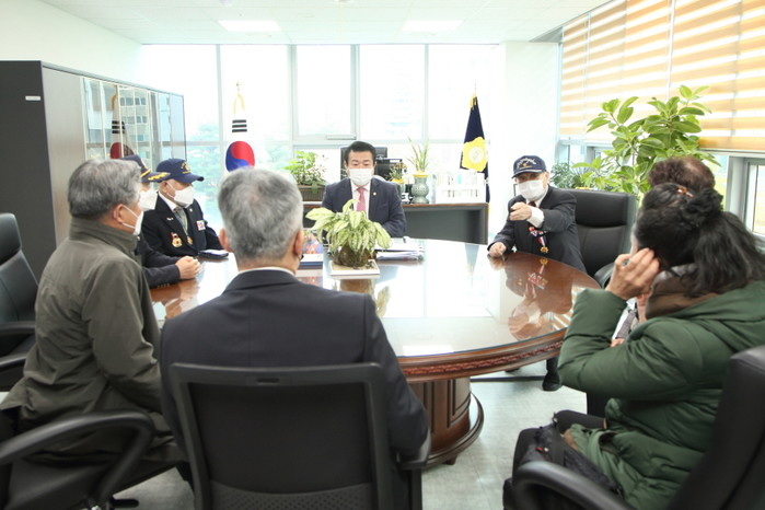[시민일보 = 이대우 기자] 박동웅 서울 구로구의회 의장이 최근 의장실에서 지역 보훈단체 회장들로 구성된 ‘구로구 보훈단체협의회’와 간담회를 열고, 지역내 보훈단체의 애로사항과 건의사항을 청취했다.