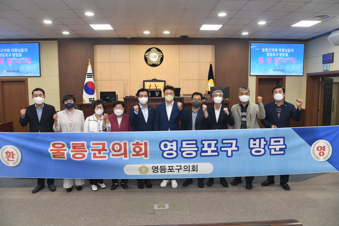 고기판 의장은 “오늘 방문이 작년 5월 울릉군의회와 영등포구의회가 우호 교류 협약식을 맺은 후 울릉군의회에서 우리 구의회에 공식적으로 첫 방문하신 것이기에 더욱 의미있고 뜻깊다”며 “이제 코로나로 인한 거리두기가 완화됨에 따라 앞으로 양 의회의 더욱 자유롭고 활발한 교류를 기대한다”고 말했다.