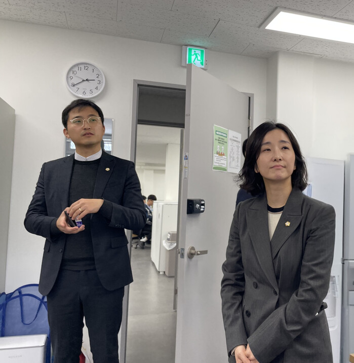 | ▲ 원창희 위원장(왼쪽)이 박주리 의원과 함께 아이맘강동 고덕점 장난감 도서관·수리센터를 살펴보고 있다. (사진=강동구의회 제공) |