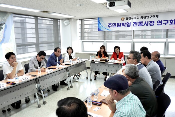 [시민일보 = 여영준 기자] 서울 광진구의회(의장 추윤구) 의원연구단체인 ‘주민밀착형 전통시장 활성화 연구회’가 최근 브리핑실에서 지역내 전통시장 상인회 회장단과 간담회를 개최했다.