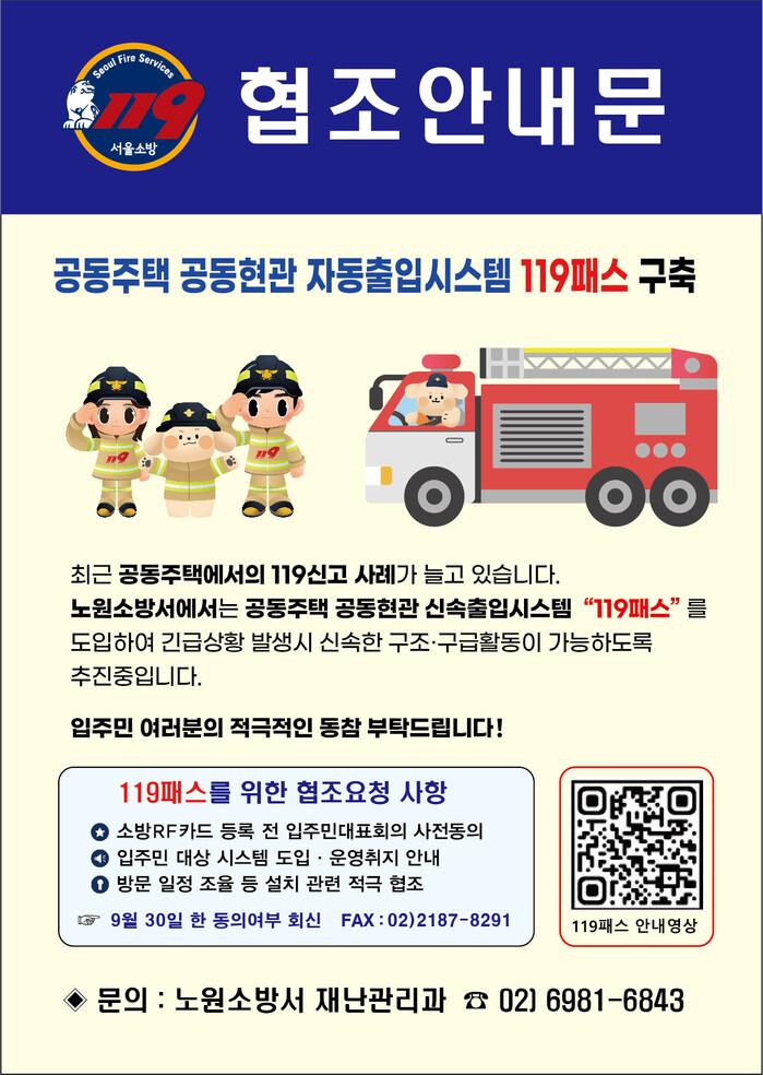 [시민일보 = 박소진 기자] 서울 노원소방서는 아파트 등 공동주택에서 신속한 현장 접근을 위해 ‘119패스(RFID)’ 운영을 추진한다고 밝혔다.
