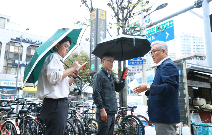[시민일보 = 이대우 기자] 김호재 서울 송파구의회 의원(삼전동, 잠실3동)이 최근 잠실새내역 2번 출구 일대에서 송파구 도시교통과 소속 공무원들과 함께 현장 점검을 실시하고, 보행로를 침범하는 자전거 무단 주차에 대한 개선대책을 논의했다.
