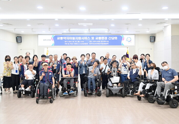 이날 간담회에는 이혜정 위원장을 비롯해 파주시 도로교통국 교통정책팀, 택시팀, 버스정책팀 관계 공무원과 파주시 교통약자이동지원센터장, 파주자유로장애인자립생활센터장, 교통약자특별수단 장애인 이용자 등 총 41명이 참석했다.