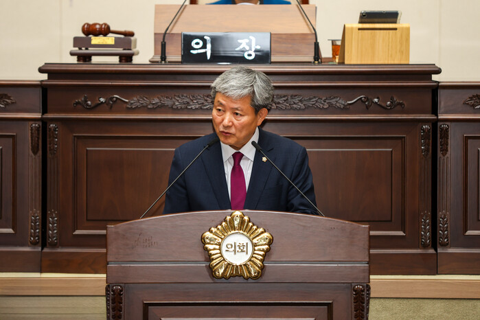 | ▲ 제282회 정례회 제2차 본회의에서 주복중 의원이 5분 자유발언을 하고 있다. (사진=성동구의회 제공) |