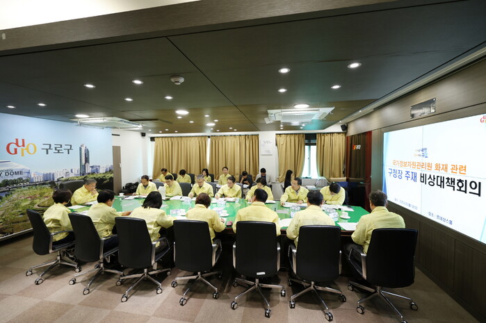 [시민일보 = 박소진 기자] 구로구(구청장 장인홍)가 지난 29일 구청 르네상스홀에서 주요간부회의를 열고 국가정보자원관리원 화재 관련 비상대책회의를 실시했다.
