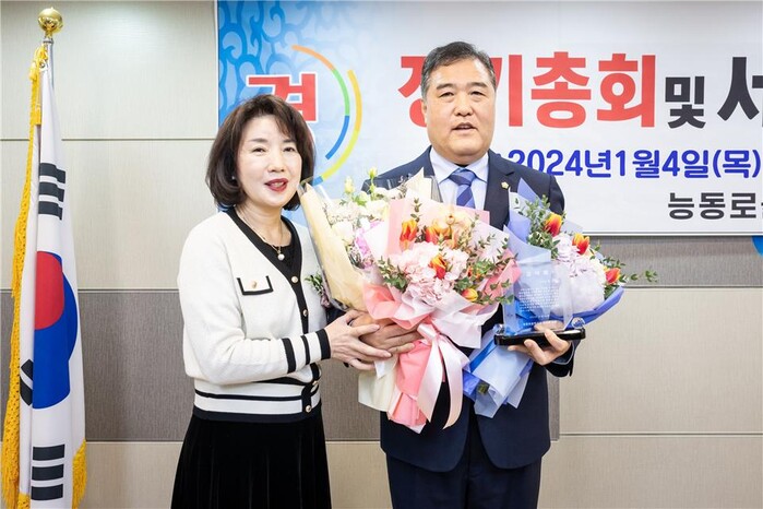 | ▲ 능동로골목시장 상인회로부터 감사패를 받은 장길천 의원(오른쪽)이 기념촬영을 하고 있다. (사진=광진구의회 제공) |
