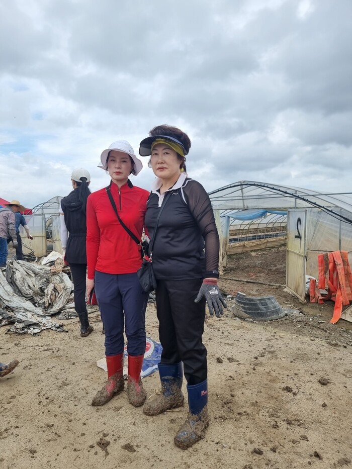 박 의원은 국민의 힘 당원들과 함께 수해를 입은 주민들을 위로하고, 비닐하우스 내 수해 작물을 처리하며 구슬땀을 흘렸다.