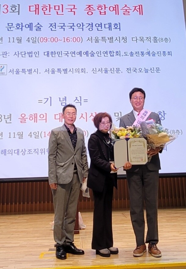 [시민일보 = 이대우 기자] 이강무 서울 송파구의회 의원(잠실4·6동, 풍납1·2동)은 최근 서울시청 다목적홀(8층)에서 열린 제3회 대한민국 종합예술제, 2023년 올해의 대상 시상식 및 유공표창에서 올해의 기초의정대상을 수상했다.