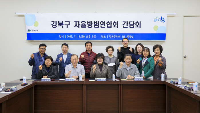 [시민일보 = 홍덕표 기자] 서울 강북구의회(의장 최치효) 유인애 부의장(번1·2동, 수유2·3동)은 최근 구의회 3층 회의실에서 자율방범연합회 대원들과의 간담회를 열고 의견을 나누며 지원방안을 모색했다.