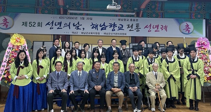 [해남=정찬남 기자] 전남 해남교육지원청(교육장 이자영)은 지난 20일 해남 향교에서 제52회 성년례 행사에 해남공업고등학교 남학생 10명, 여학생 10명과 함께 참석했다.