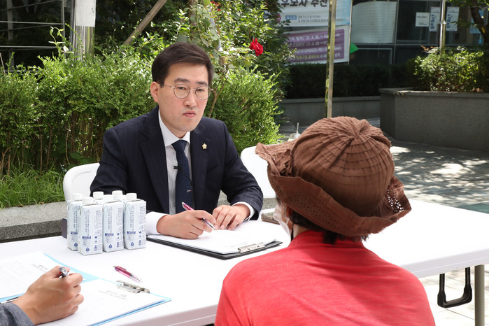 | ▲ 허광행 의장이 한 주민의 의견을 청취하고 있는 모습. (사진제공=강북구의회) |