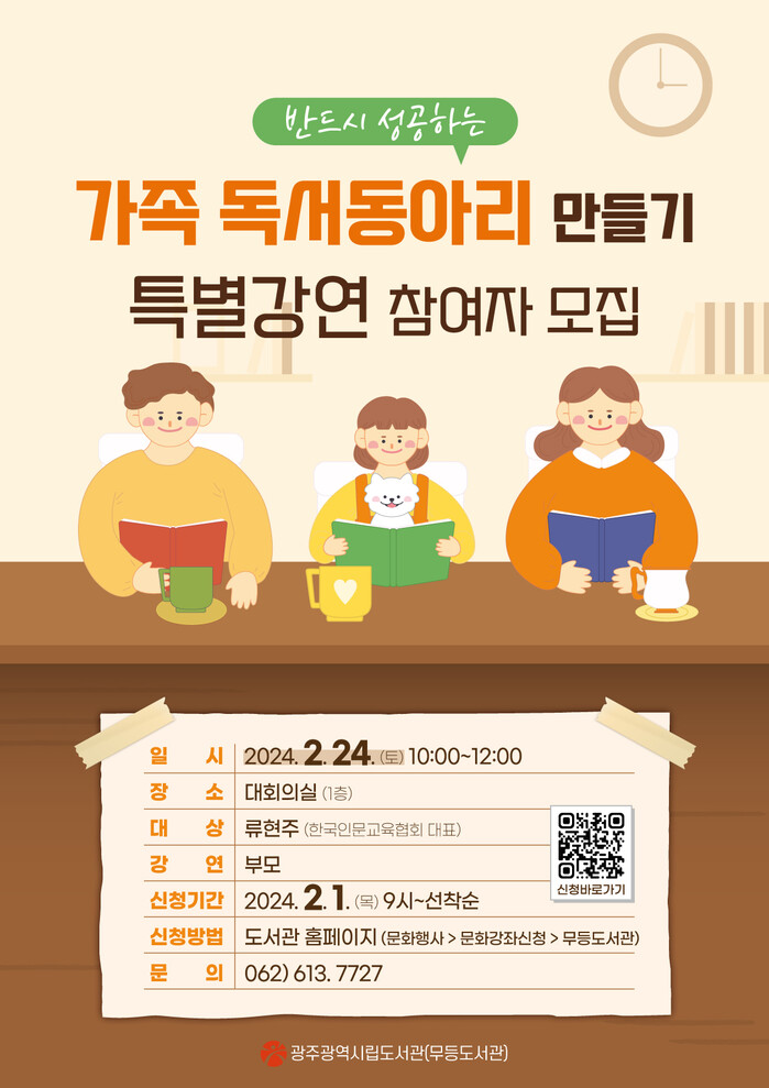 신청은 광주시립도서관 누리집에서 가능하며, 자세한 사항은 무등도서관으로 문의하면 된다.