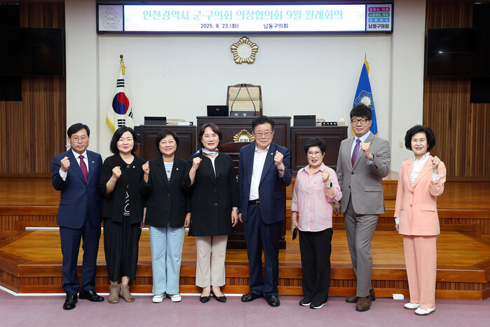 회의에는 협의회 회장인 이의명 옹진군의회 의장을 비롯해 이종호 중구의장, 유옥분 동구의장, 전경애 미추홀구의장, 박현주 연수구의장, 이정순 남동구의장, 안애경 부평구의장, 송승환 서구의장 등 8개구 의장이 참석했다.