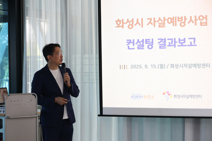 | ▲ 화성시 자살예방사업 컨설팅 결과를 발표하고 있다 /사진제공=화성특례시 |