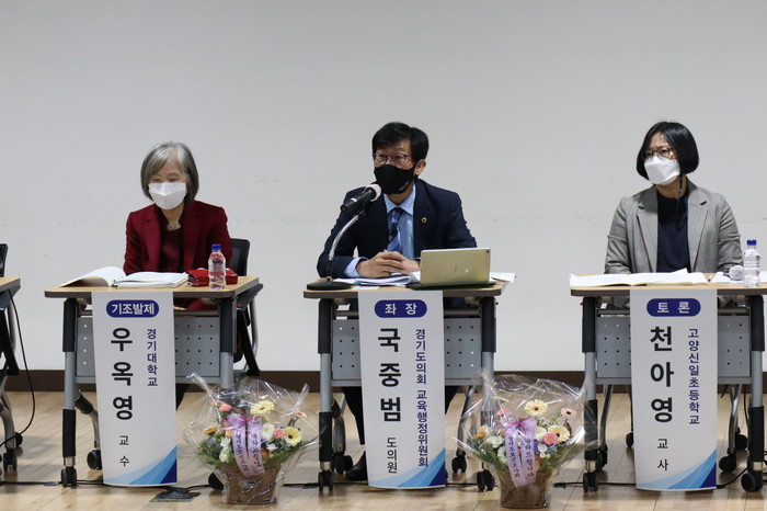 [수원=채종수 기자] 경기도의회 교육행정위원회 국중범(더불어민주당, 성남4) 의원이 최근 경기평생교육학습관 강당에서 '학생 보건교육과 건강관리를 위한 보건교육센터 설립·운영'을 위한 토론회를 개최했다.