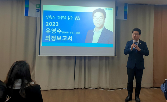 [시민일보 = 이대우 기자] 유영주 서울 양천구의회 의원(목1·신정1·신정2동)은, 최근 신정2동 주민센터 다목적홀에서 지역 의정보고회를 열고 구민과 활발한 의견을 교류했다.