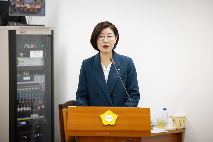| ▲ 구로구의회 더불어민주당 김미주(비례대표) 의원이 지난 14일 열린 제334회 구로구의회 임시회 행정기획위원회 안건심사에서 조례안 제안설명을 하고 있다. (사진=구로구의회 제공) |