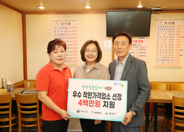 [시민일보 = 문민호 기자] 용산구(구청장 박희영)는 최근 지역 물가안정에 기여하고 건전한 소비문화 확산에 앞장서는 모범 업소 1곳을 ‘2025 우수 착한가격업소’로 선정했다고 22일 밝혔다.