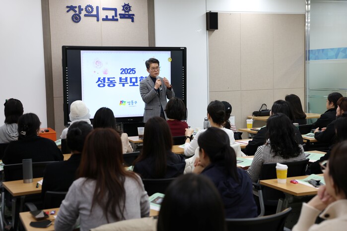 | ▲ 2025 성동 부모학당에서 정원오 성동구청장이 인사말 하는 모습. (사진=성동구청 제공) |