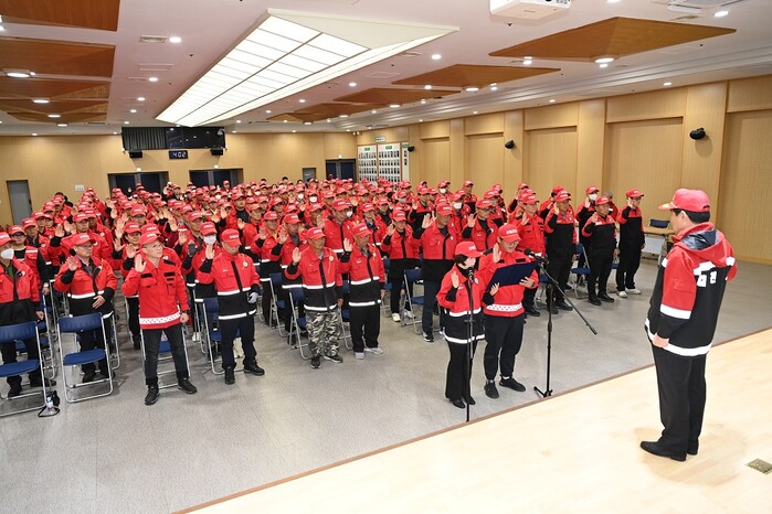 [김천=박병상 기자] 김천시는 가을철 산불조심기간(11월 1일 ~ 12월 31일)이 도래함에 따라 지난 11월 13일 시청 3층 강당에서 산불감시원, 산불전문예방진화대, 공무원 등 300여명이 참석한 가운데‘2024년 가을철 산불방지 결의대회 및 교육’을 실시해 본격적인 산불방지 비상체제로 돌입하고 산불방지 활동에 총력을 다할 것을 다짐했다.